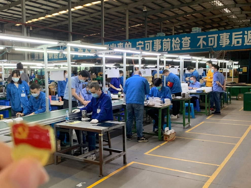 這是繼3月21-22日黨員/干部生產專線裝配生產5000臺廚房秤EK3226的第二場奮戰了。這一周室外飄著零星小雨,氣溫有所下降,但這條生產專線上卻是一派熱氣騰騰、干勁朝天的繁忙景象。產線高效運行,全體黨員干部干勁十足,出色地完成了預定生產目標。