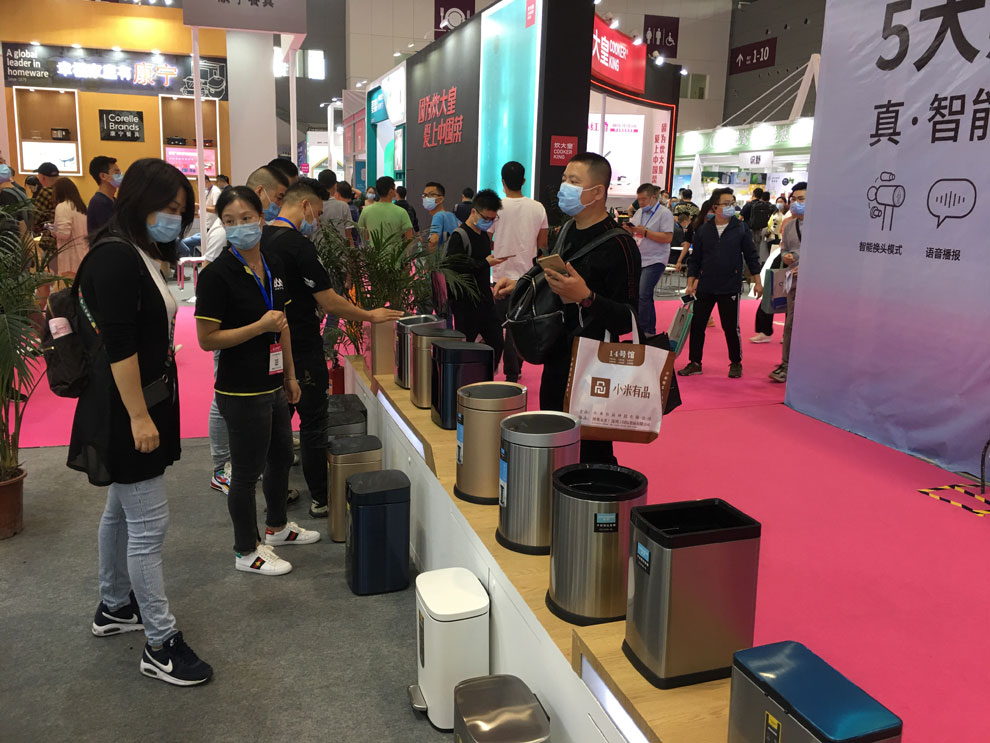 本屆展位最大的驚喜就是近20款超邦智能垃圾桶的驚艷亮相,作為香山股份旗下子品牌超邦,一直推行“美好生活研究所”的優(yōu)活概念,為都市人忙碌的生活做智能減法。香山自主研發(fā)的智能垃圾桶的出現(xiàn),照顧到居家垃圾的清理習慣,可以說是香山智能家居的又一個里程碑。本次展出的智能垃圾桶,多選用410不銹鋼工藝,創(chuàng)新封油技術,能有效抵抗殘留指紋、油污等。另選用進口智能芯片,有效延長續(xù)航時間。產(chǎn)品機身感應覆蓋360°無死角,任意觸碰均可智能開蓋,5S后自動關閉。靜音開合,減少生活噪音。富有流線型的外觀,智能的操作,讓智能垃圾桶成為本次展會的新寵,進來體驗、詢價的客戶不斷,掀起一輪新高潮。